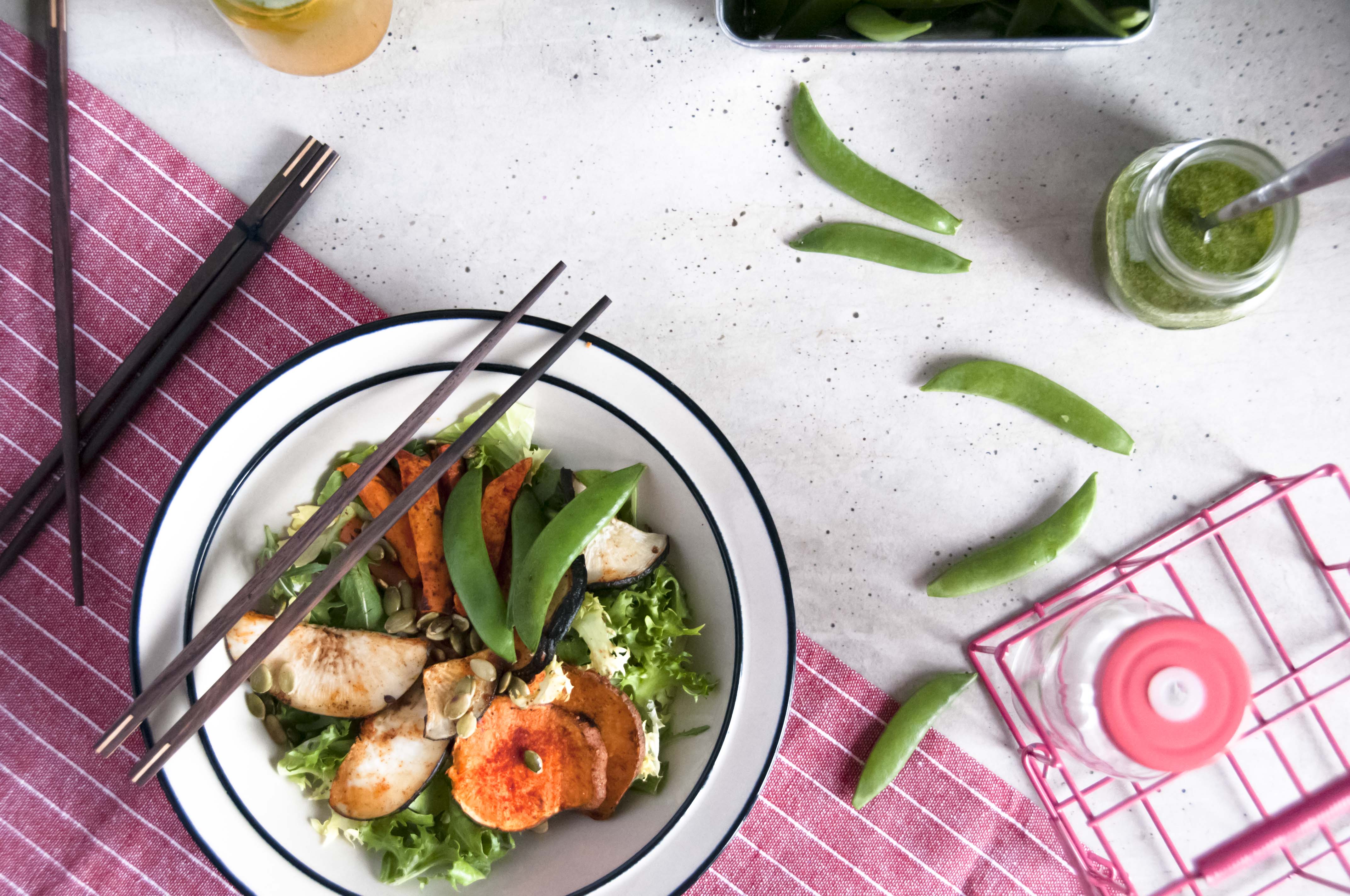 Mam dla Was dzisiaj sałatkę, która jest sycąca i super zdrowa. Możecie ją dowolnie modyfikować – zamiast orzechów laskowy dodać orzechy włoskie, albo brazylijskie. Zamiast wegańskiego parmezanu, możecie dodać suszone pomidory, a miks sałat możecie całkowicie pominąć. Osobiście lubię miks sałat za to, że wspaniale chrupie i jest niskokalorycznym wypełnieniem miski. Sałatki dzięki temu jest więcej