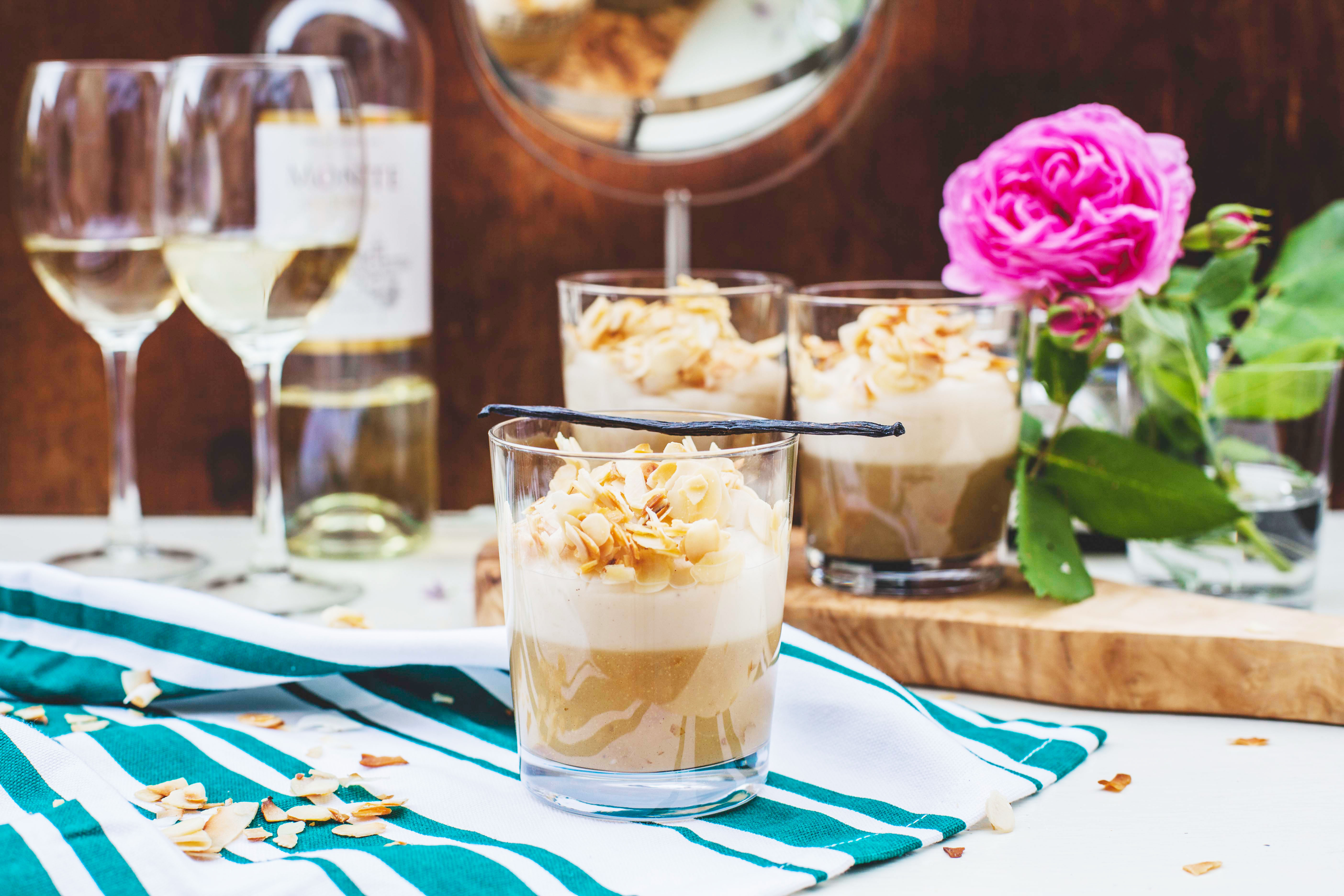 Deser gruszkowy z winem, budyniem i płatkami migdałowymi to nie tylko zwyczajny deser z nutką winnego posmaku. Oj nie! To prawdziwe alkoholowe szaleństwo, po którym poczujecie się błogo, nie tylko za sprawą dobrego smaku, ale też procentów; ). To mój nowy ‚must have’ na każdej imprezie, ale też sposób na niezapowiedzianych gości, bo deser robi się